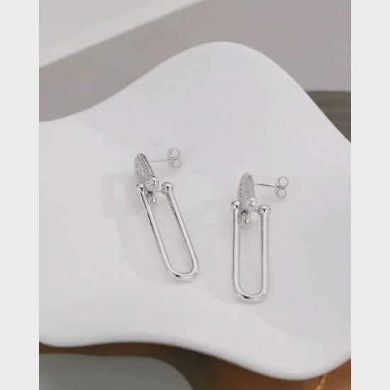 Minimal elegance, beautifully redefined. These stylish and sophisticated silver earrings are highlighted with sparkling accents, making them perfect for adding a graceful glow to both everyday outfits and special occasions.